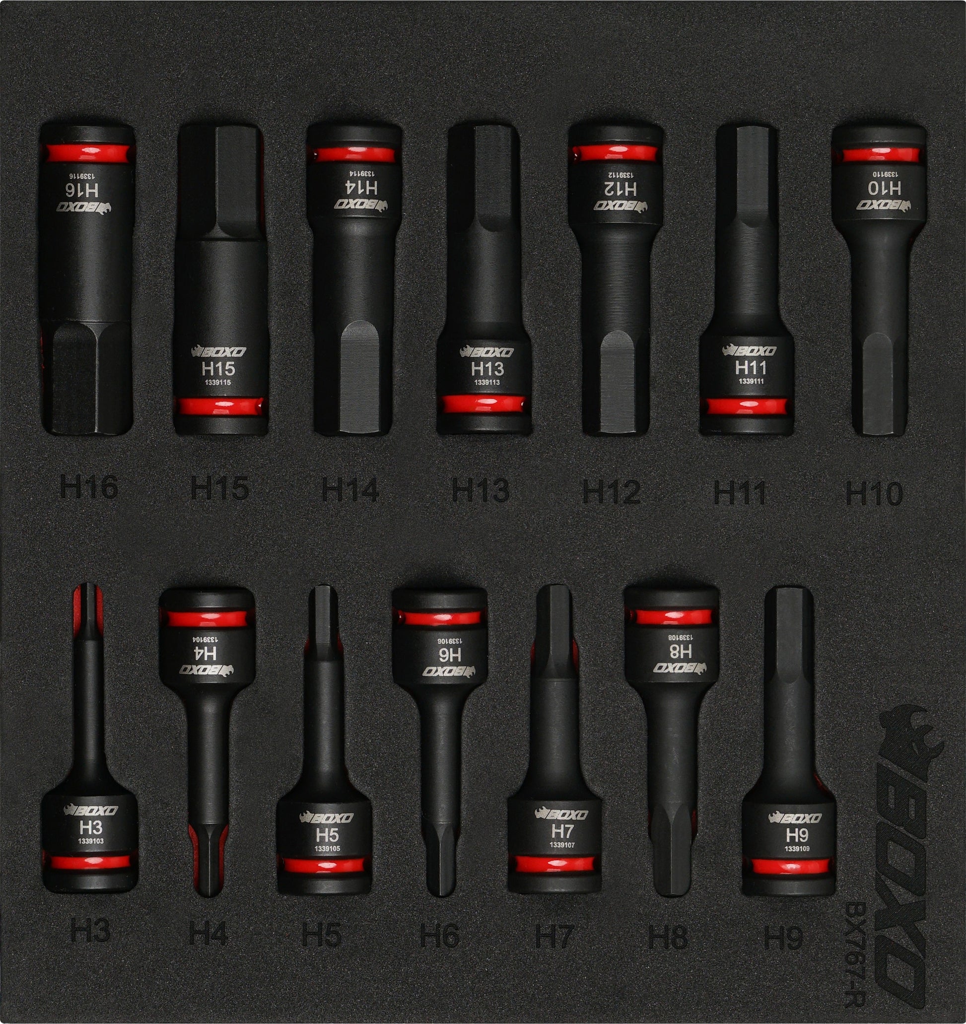 BOXO 14Pc 3/8" Impact Hex Bit Socket Set In EVA Foam